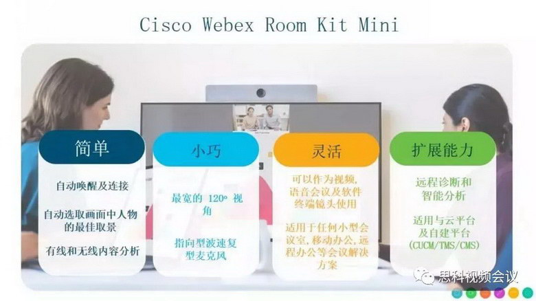 思科一直致力于從客戶出發(fā),為適應(yīng)小型辦公場(chǎng)所,小型會(huì)議室,早期SX10紅遍業(yè)內(nèi)。如今AI時(shí)代的到來,Cisco Webex Room Kit Min應(yīng)運(yùn)而生: