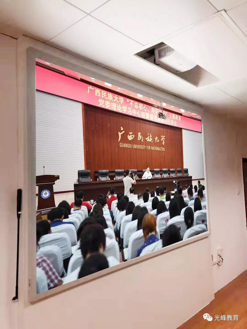 廣西師范大學(xué)也采用光峰高亮投影機(jī)+電動(dòng)幕布方案。顯示畫面明亮清晰,色彩還原度真實(shí),顏色均衡,亮度與顏色并存。