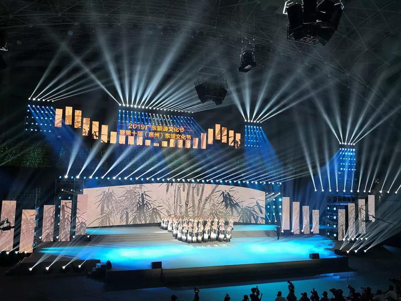 恢弘大氣的舞美效果,色彩繽紛,展現(xiàn)出東坡文化、嶺南文化、惠州文化深厚的文化底蘊。