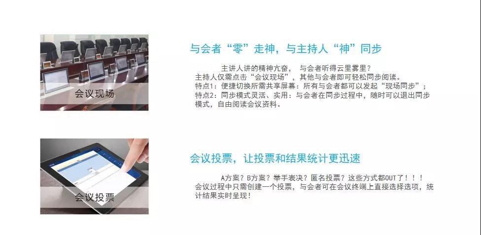 無紙化會議系統(tǒng)除了保護(hù)森林,營造低碳環(huán)保環(huán)境外,在很大程度上提高了工作人員的效率:在考勤管理、會議議程、會議投票、分組討論、資料查閱等多種功能,都可以在無紙化系統(tǒng)中體現(xiàn)出來。