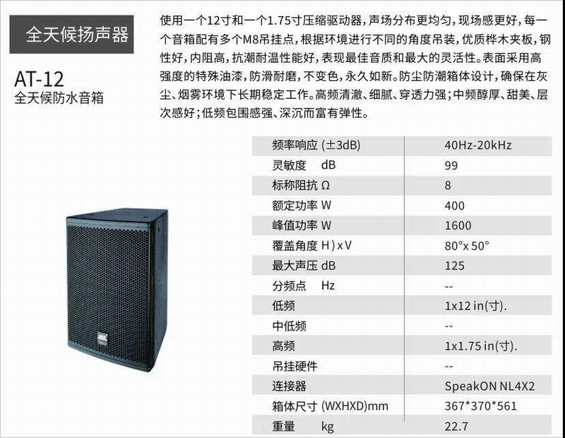 本次JSL爵士龍?zhí)峁┑?a href=http://www.audio160.com/professional/ target=_blank>專業(yè)音響套裝,包括AT-12全天候防水音響、帶7寸顯示屏MH-2400功放、G-980無線話筒、12U機柜及相關(guān)線材。此套方案非常適合戶外演出使用,AT-12抗潮耐溫性能好,表面的特殊油漆,防滑耐磨不變色,長久如新。MH-2400自帶顯示屏,滿足戶外演出人員對顯示的需求。此方案既滿足了平時的講座、宣講,又滿足了群眾文化演出的需要,非常適合用于室外舞臺演出又穩(wěn)定耐用。