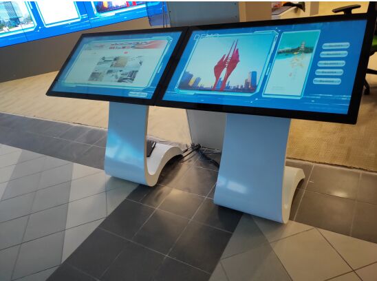 展示中心正面的顯示墻采用環(huán)抱式設(shè)計(jì),就像是張開(kāi)了懷抱,歡迎著、親切地問(wèn)候著每位到來(lái)的賓客;而正前方和側(cè)面的43寸銳麗觸摸一體機(jī),則像是禮貌的向?qū)ВM責(zé)地立在那,靜待賓客們前來(lái)用指尖輕觸向它們?cè)儐?wèn)。