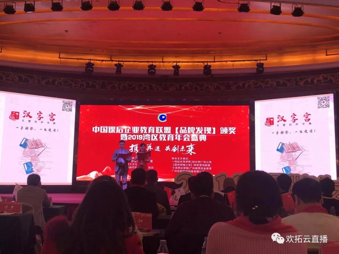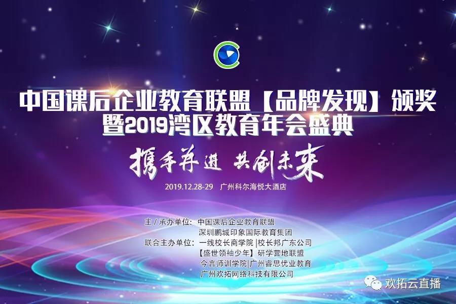 2019年12月28日,中國(guó)課后企業(yè)教育聯(lián)盟【品牌發(fā)現(xiàn)】頒獎(jiǎng)暨2019灣區(qū)教育年會(huì)盛典在廣州科爾海悅大酒店盛大開(kāi)幕。大會(huì)由中國(guó)課后企業(yè)教育聯(lián)盟、深圳鵬城印象國(guó)際教育集團(tuán)、廣州歡拓網(wǎng)絡(luò)科技有限公司、一線校長(zhǎng)商學(xué)院|校長(zhǎng)邦廣東公司、盛世領(lǐng)袖少年研學(xué)營(yíng)地聯(lián)盟、今言師訓(xùn)學(xué)院|廣州睿思優(yōu)業(yè)教育聯(lián)合主辦
