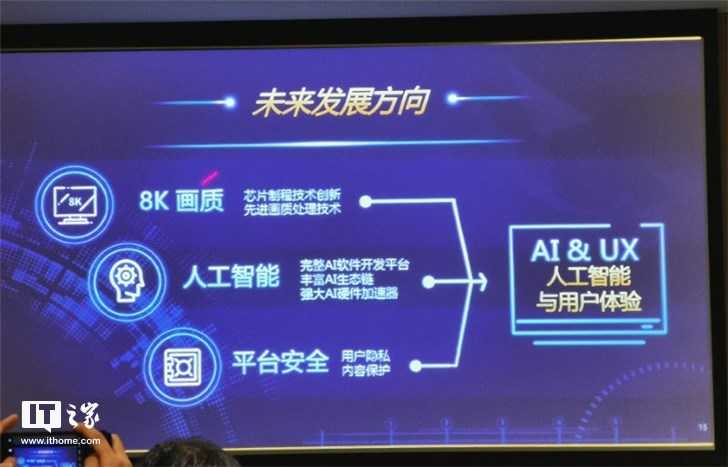 張?jiān)鲕姳硎,今年?lián)發(fā)科的8K技術(shù)解決方案將開(kāi)始落地,預(yù)計(jì)下半年將推出單顆8K芯片。目前,4K電視普及數(shù)年,但4K的片源、內(nèi)容仍屬于是稀缺資源。現(xiàn)在聯(lián)發(fā)科要推8K智能電視芯片,會(huì)不會(huì)太領(lǐng)先于市場(chǎng)及消費(fèi)者的接受程度呢?在會(huì)后的媒體專訪過(guò)程,張?jiān)鲕娀卮鹆薎T之家編輯的提問(wèn)。張?jiān)鲕娬J(rèn)為,8K剛推出來(lái)的時(shí)候,產(chǎn)業(yè)鏈配套會(huì)比較差,但行業(yè)發(fā)展規(guī)律一般都是裝置先行、(8K)終端越來(lái)越多的時(shí)候,會(huì)推動(dòng)整個(gè)產(chǎn)業(yè)鏈往前走。而且4K到8K的速度會(huì)越來(lái)越快,屆時(shí)8K內(nèi)容、8K裝置會(huì)向下兼容,4K內(nèi)容放到8K屏幕上來(lái)看,畫質(zhì)在經(jīng)過(guò)處理后也會(huì)比4K屏幕顯示的好。