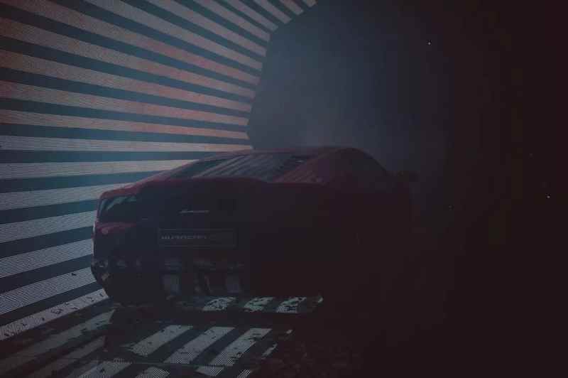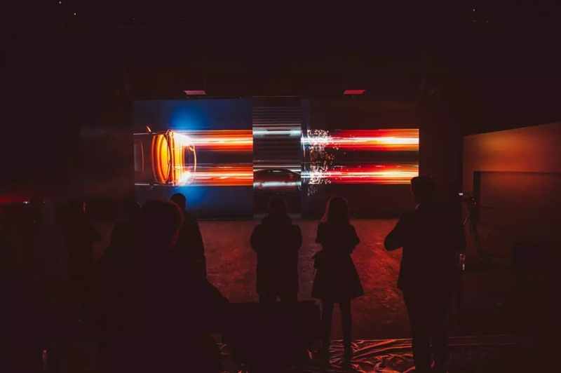 跑車在激光效果、煙霧、五彩紙屑大炮和半透明led屏幕襯托的效果下出現(xiàn)在觀眾視野中。
