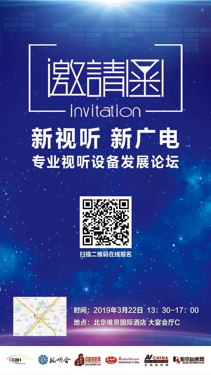 在此,誠邀各位視聽行業(yè)同仁蒞臨參加3月22日北京“新廣電·新視聽”專業(yè)視聽設(shè)備發(fā)展論壇,行業(yè)的發(fā)展離不開你的支持,趕緊掃描邀請函上二維碼在線報名,期待與您在論壇現(xiàn)場見面,不見不散!
