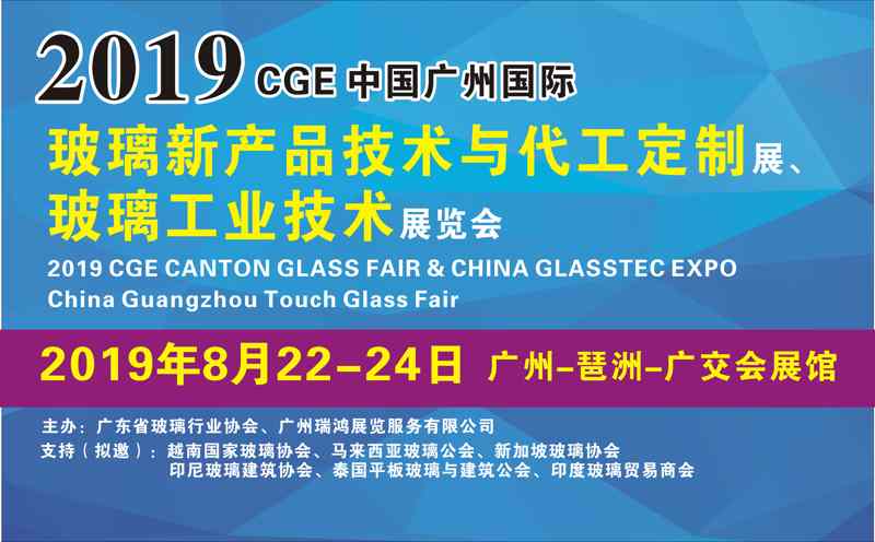 題記:由廣東省玻璃協(xié)會與廣州瑞鴻展覽服務(wù)有限公司聯(lián)合打造的“2019 CGE廣州國際玻璃工業(yè)技術(shù)展覽會暨廣州國際玻璃展”將于8月22-24日在廣州琶洲廣交會展館再度舉行,同期舉行:廣州國際3D曲面玻璃與觸控面板技術(shù)展覽會,屆時展會將聯(lián)合馬來西亞玻璃商會、越南玻璃協(xié)會、印尼玻璃商會、印度玻璃協(xié)會等東南亞多國玻璃相關(guān)商協(xié)會舉行東南亞玻璃對接洽談會,以此活動為契機,幫助更多中國企業(yè)開拓東南亞國家市場!隨著粵港澳大灣區(qū)發(fā)展綱要出臺,各行各業(yè)的建設(shè)投資將繼續(xù)加大,無形之中,將帶動玻璃產(chǎn)業(yè)的發(fā)展!玻璃作為行業(yè)建設(shè)通用產(chǎn)品,市場需求進一步擴大。