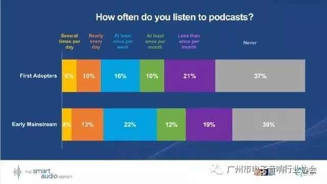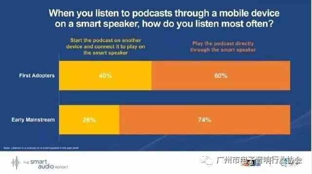 29 %的早期主流用戶表示,他們的智能音箱正在取代電視。28%的早期主流用戶通過智能音箱收聽播客。