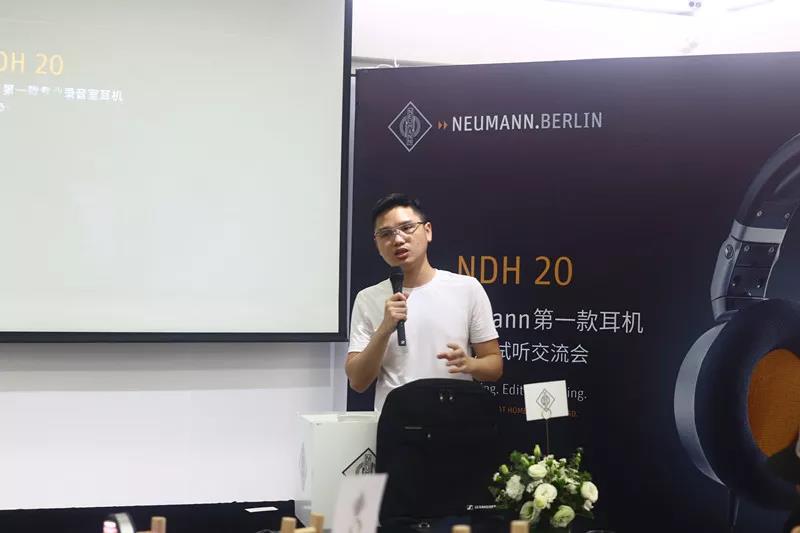錦藝國際渠道經(jīng)理吳杰春先生,則為大家補(bǔ)充了Neumann NDH20的產(chǎn)品亮點(diǎn)。NHD20采用全新設(shè)計(jì)的38mm動圈單元,強(qiáng)力釹磁鐵確保高靈敏度和低失真。NDH 20的Duofol振膜專業(yè)技術(shù)與HD800相同,追求精準(zhǔn)的聲音控制,實(shí)現(xiàn)自然通透的真實(shí)聲音。