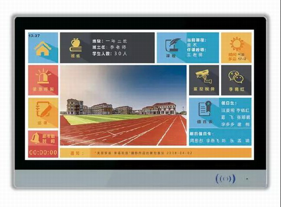 電子班牌是一款智能物聯(lián)網(wǎng)信息終端,通過校園智慧化平臺(tái)的數(shù)據(jù)呈現(xiàn),一方面呈現(xiàn)了校園特色和班級(jí)文化的豐富多彩,另一方面成為了學(xué)校與班級(jí)、教室與學(xué)生、以及家長(zhǎng)與學(xué)生之間的互動(dòng)媒介之一。電子班牌為學(xué)校提供今日課表區(qū)、班級(jí)基本信息區(qū)、文化展示區(qū)、滾動(dòng)通知區(qū)、功能按鍵區(qū)、今日值日區(qū)等六大功能模塊,助力學(xué)校真正發(fā)揮智慧校園優(yōu)勢(shì),豐富和創(chuàng)新教學(xué)生活