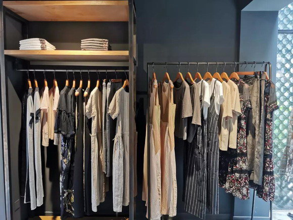 他設(shè)計的衣服材質(zhì)多為棉、麻布,