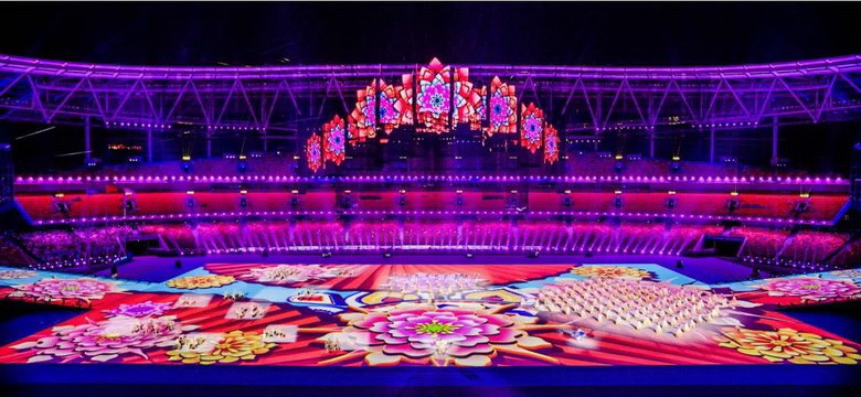 2019年9月8日,第十一屆全國少數(shù)民族傳統(tǒng)體育運動會開幕式在鄭州奧林匹克體育中心隆重舉行。本屆大會以“奮進新時代,中原更出彩”為主題,并且是第一次在中部地區(qū)舉辦。開幕式上的民族大聯(lián)歡活動,由巴可與華奧傳媒強強聯(lián)合,將多姿多彩的少數(shù)民族傳統(tǒng)文化與舞臺新技術(shù)、新手段深度融合,讓本屆民族運動會呈現(xiàn)諸多新奇亮點,為全國觀眾打造耳目一新、美輪美奐的視聽盛宴。