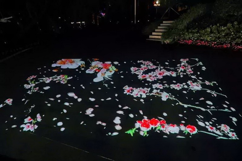 在兩極一軸中,燈光的圖案燈、投影機(jī)、水紋燈、光束燈等多種文創(chuàng)燈光燈具,也靈活運(yùn)用在新會美術(shù)館、新會人民會堂周邊、圭峰山永鎮(zhèn)山門、圭峰路、公園路、新豪景廣場,盆趣園,艇仔湖等幾大節(jié)點(diǎn),下面就跟隨小編來一場“眼睛旅行”吧