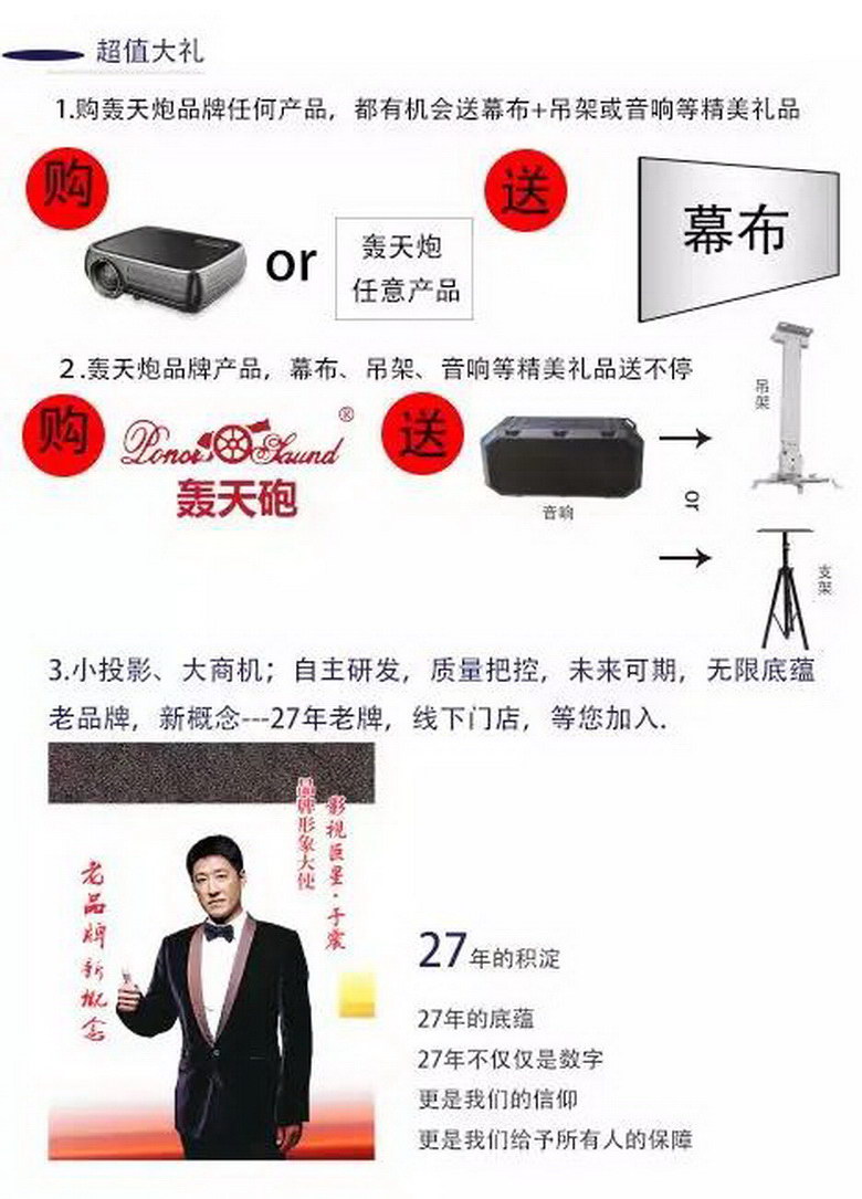 蘇州轟天炮光電科技有限公司,成立于1992年,總部及生產(chǎn)基地位于蘇州市相城區(qū)陽澄科技產(chǎn)業(yè)園石田路5號,購地自建三萬多平方米花園式投影機(jī)產(chǎn)業(yè)園。與日本愛普生、索尼、美國TI、臺灣富士康、元太、Mstar等國際知名品牌建立了長期緊密的戰(zhàn)略合作關(guān)系。具有現(xiàn)代化的全系列產(chǎn)業(yè)鏈、擁有多項(xiàng)專利和發(fā)明技術(shù)、專注研發(fā)、生產(chǎn)、銷售3LCD、LED、DLP等高清家庭影院投影機(jī),全面進(jìn)軍國內(nèi)外市場;其 “轟天炮”品牌投影機(jī)應(yīng)用廣泛、質(zhì)量穩(wěn)定,遠(yuǎn)銷歐洲、拉美,澳洲、東南亞等地;在業(yè)界具有很高的口碑和性價(jià)比,深受國內(nèi)外客戶的好評和喜愛。