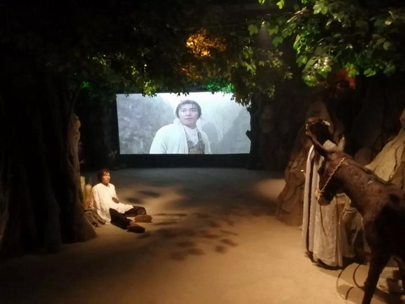五百年前至尊寶與紫霞仙子在盤絲洞前相遇,并在至尊寶腳上點上三顆痣。紫霞仙子與至尊寶的結(jié)局有多遺憾,兩人的初見就有多可貴!按笤捗浴敝蒙硐嗤碾娪皥鼍,看著投影屏幕上的電影片段,見證一段刻骨銘心感情的開始。