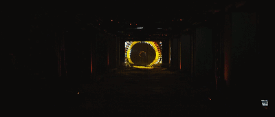 陣列裝置的主要部分是56個(gè)周邊有LED(LED總長(zhǎng)度約270米)的三角形。它們被懸掛在168個(gè)動(dòng)力絞盤上。同時(shí),14臺(tái)最現(xiàn)代的投影機(jī),亮度水平為30,000流明,4K分辨率將畫面投射到陣列表面。