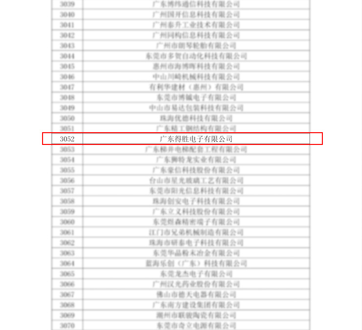 根據(jù)國(guó)家《高新技術(shù)企業(yè)認(rèn)定管理辦法》和《高新技術(shù)企業(yè)認(rèn)定管理工作指引》相關(guān)規(guī)定,廣東得勝電子有限公司被認(rèn)定為“高新技術(shù)企業(yè)”,這也是得勝公司繼2007年,2016年之后,再次獲評(píng)該榮譽(yù)稱號(hào)。近日,高新技術(shù)企業(yè)認(rèn)定管理工作網(wǎng)已公示廣東省2019年第一批企業(yè)擬認(rèn)定高新技術(shù)企業(yè)名單公示,得勝電子榜上有名。
