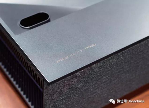 ↑具備4K超高清解析力的光學(xué)鏡頭,能夠在0.6m距離下投射100英寸的大畫面,具備電動對焦的能力,以及電動鏡頭滑蓋的功能