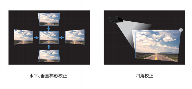 為了適應(yīng)更多復(fù)雜的應(yīng)用場(chǎng)景,防止畫面失真變形,PJ LU9080和PJ LU10600還具備四角校正功能,可對(duì)投影畫面的每一個(gè)角進(jìn)行單獨(dú)調(diào)整,再輔以水平、垂直±20度梯形校正功能,輕松使投影畫面成為矩形。