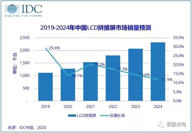 最近幾年隨著成本逐步降低,LCD以及LED拼接屏呈現(xiàn)了高速增長的趨勢,數(shù)字化的轉(zhuǎn)型需求更推動(dòng)了這一數(shù)字的持續(xù)擴(kuò)張, 由于疫情影響,2020年初拼接屏增速略微放緩,但隨著國內(nèi)疫情得以控制,新基建等項(xiàng)目的逐步開展,2021年市場將呈現(xiàn)更快的增長,預(yù)計(jì)增速達(dá)到20.3%。