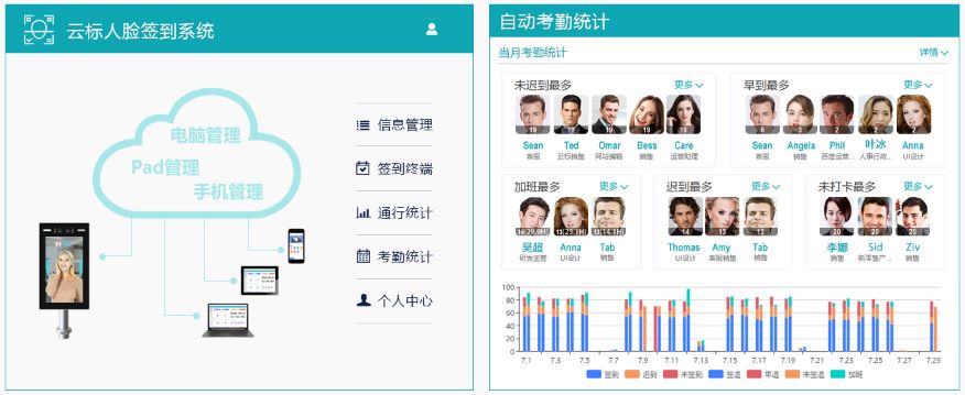 可多人同時識別,上班打卡不排隊