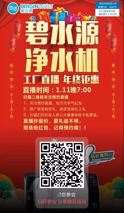 這一次,碧水源與微吼合作,將直播間搬到產(chǎn)品體驗(yàn)區(qū)?蛻暨M(jìn)入直播間,開(kāi)屏海報(bào)映入眼簾,碧水源公眾號(hào)二維碼隨即彈出,歡迎模式不僅充滿人性化還進(jìn)一步擴(kuò)充自身私域流量池。