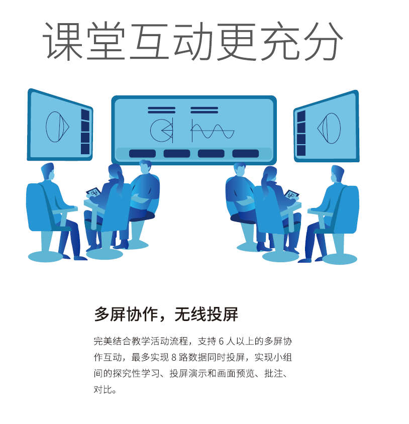 通過(guò)共享每個(gè)人的電子設(shè)備,讓團(tuán)隊(duì)、講師和主持人集思廣益,共同合作。