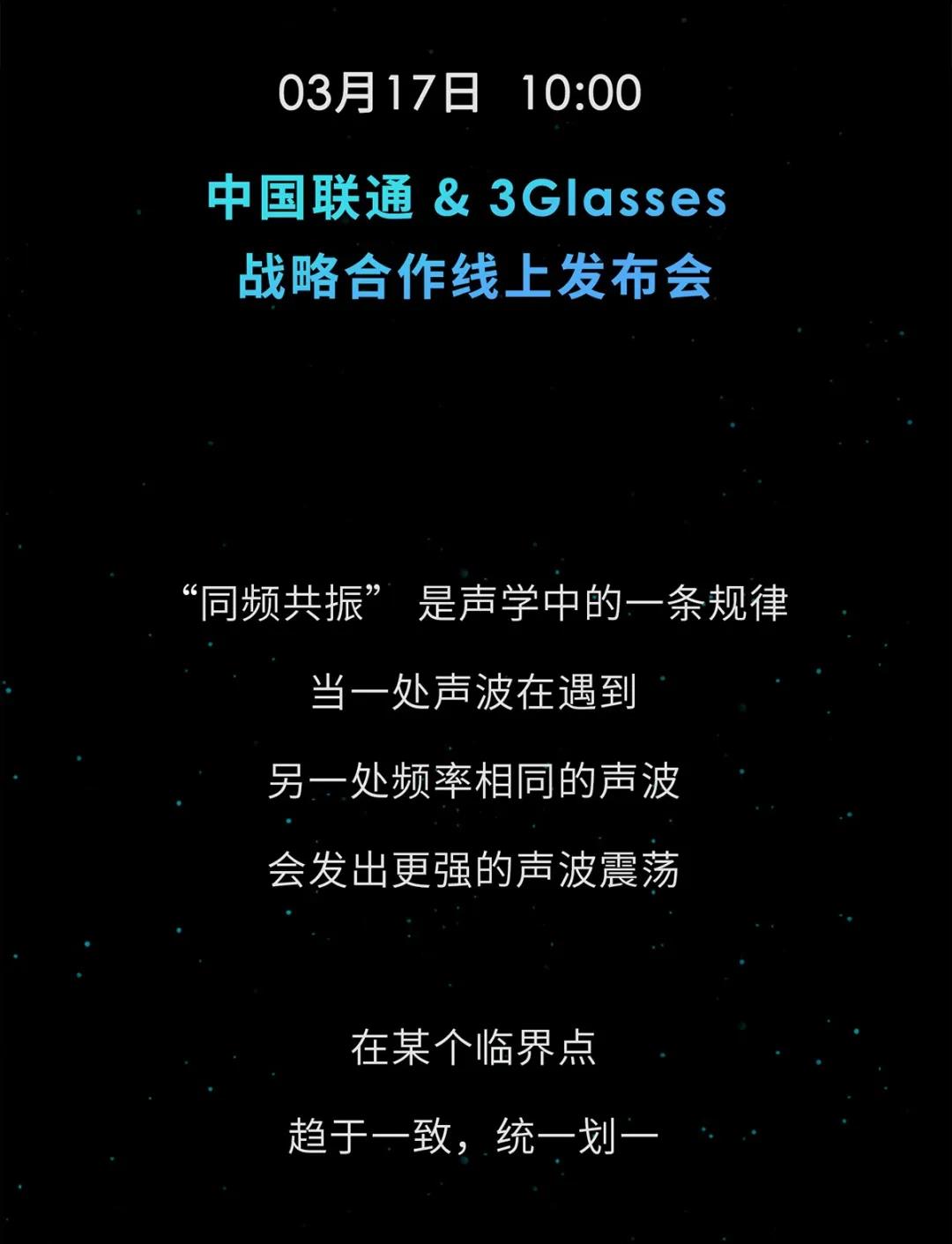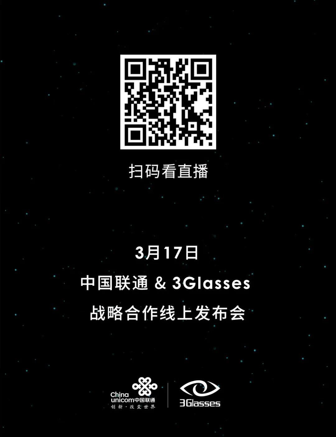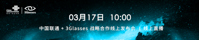 3月17日 10:00中國(guó)聯(lián)通 & 3Glasses戰(zhàn)略合作線上發(fā)布會(huì)盡請(qǐng)期待