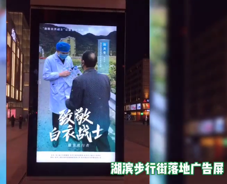 為了致敬醫(yī)護人員,歡迎白衣天使們的榮耀歸來,杭州濱湖路步行街的戶外一體機,同時集體亮屏,打造出了一道璀璨亮麗的風(fēng)景線,頻頻感動著街上每一位過路的行人。