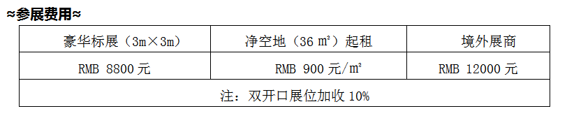 注:雙開口展位加收10%