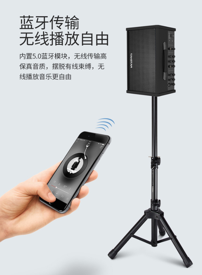 OPS-25可輸出24W大功率音量,聲音清晰有力、穿透力強(qiáng)、音質(zhì)美妙,是由內(nèi)置的兩個6.5寸高性能紙盆揚(yáng)聲器提供強(qiáng)勁的全頻聲,內(nèi)置的2寸高音喇叭豐盈聲音細(xì)節(jié),音箱表現(xiàn)聲音豐富有感染力。