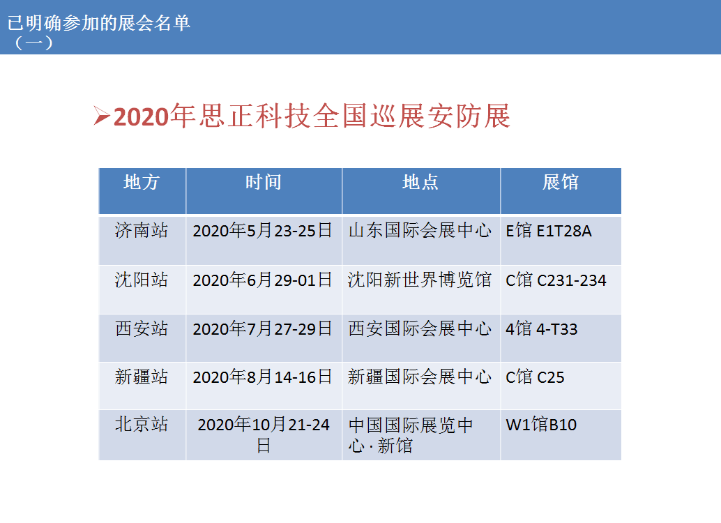 2020年思正全國智能家居展暨全國巡展安防展,歡迎您提前報(bào)名參加,我們將一如既往的提供優(yōu)質(zhì)的服務(wù)。