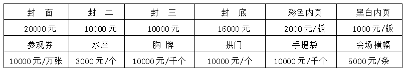 注:標準展位配備:中英文楣板(高度25cm)、日光燈兩盞、隔板(高度250cm,可用高度246cm)、洽談桌一張、椅子兩把、可容300W/220V電源插座一個;使用光地的展商自行負責展位布置的所需費用(詳見參展商手冊)。 2.其他廣告: (未備注廣告形式及報價請聯(lián)系:025-86891508)