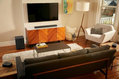 JBL BAR9.1 TWS憑借820W的峰值輸出功率,讓聲音表現(xiàn)更加強勁、澎湃,同時配備10”無線低音揚聲器帶來精準且有力量感的音效;JBL BAR9.1 TWS包含Wi-Fi連接且兼容AirPlay2及Qplay播放,同時也可以通過手機及平板的藍牙功能實現(xiàn)無線音樂串流,隨時連接享受音樂時光。