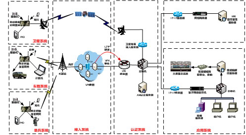 移動(dòng)視頻指揮系統(tǒng)主要由終端系統(tǒng)、專用信道、入網(wǎng)認(rèn)證管理系統(tǒng)、視音頻應(yīng)用系統(tǒng)和量子加密系統(tǒng)五部分組成,其中終端系統(tǒng)和量子加密終端可配置于指揮車輛、單兵或固定指揮場所,入網(wǎng)認(rèn)證管理系統(tǒng)、視音頻應(yīng)用系統(tǒng)和量子加密系統(tǒng)可配置于坑道或高安全級別的機(jī)房。系統(tǒng)組織結(jié)構(gòu)如下圖所示: