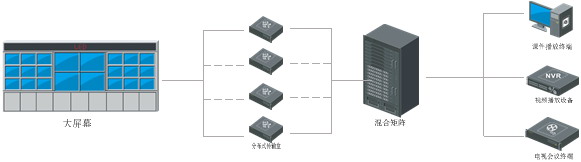 信號管理系統(tǒng)的核心是視頻矩陣,有分布式和集中式兩大類。分布式采用IP網(wǎng)絡(luò)傳輸、交換、控制視頻信號,具有擴展靈活、傳輸距離遠的特點。集中式矩陣一般集中部署在機房,使用高清或標清視頻線匯聚視頻信號,集中進行交換、轉(zhuǎn)換和控制,傳輸距離不及分布式,但性價比高,便于集中管控。 根據(jù)現(xiàn)場勘查和功能需求,采取集中和分布式相結(jié)合方式,在機房布設(shè)64*64路集中式矩陣1部,同時在距離較遠的顯示大屏側(cè)布設(shè)分布式傳輸盒,用于傳輸大屏顯示信號。