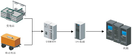 供電系統(tǒng)包括市電、油機供電、UPS應(yīng)急供電三部分,三位一體,相互支持。系統(tǒng)首用市電,市電中斷時,UPS供電系統(tǒng)確保系統(tǒng)持續(xù)供電2小時。油機啟動后,由UPS供電切換至油機供電。
