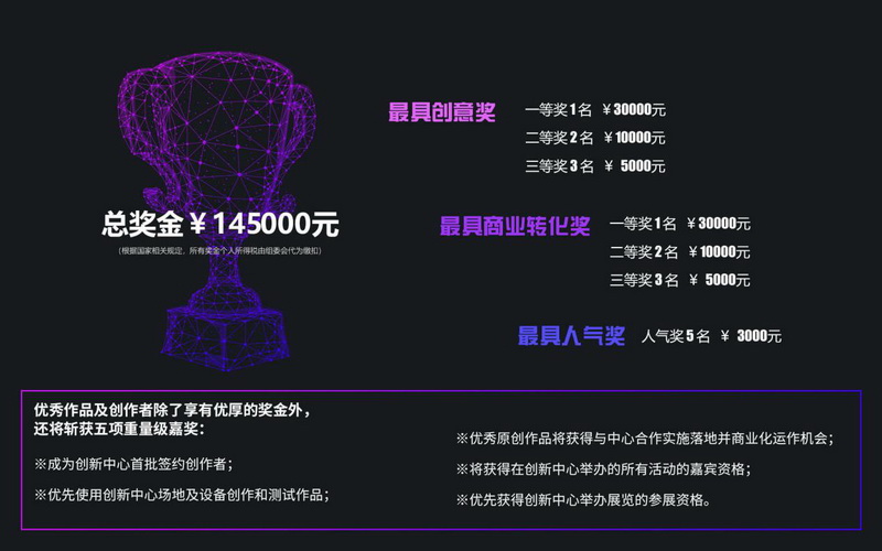 本次盛賽將邀請重量級評委,評選出的優(yōu)秀創(chuàng)作者,將給予現(xiàn)金及簽約等多重嘉獎,優(yōu)秀創(chuàng)意還可幫助其商業(yè)轉(zhuǎn)化,此舉旨在促進(jìn)數(shù)字藝術(shù)與各個行業(yè)快速融合,推動其創(chuàng)新和發(fā)展,促進(jìn)各方合作共贏。