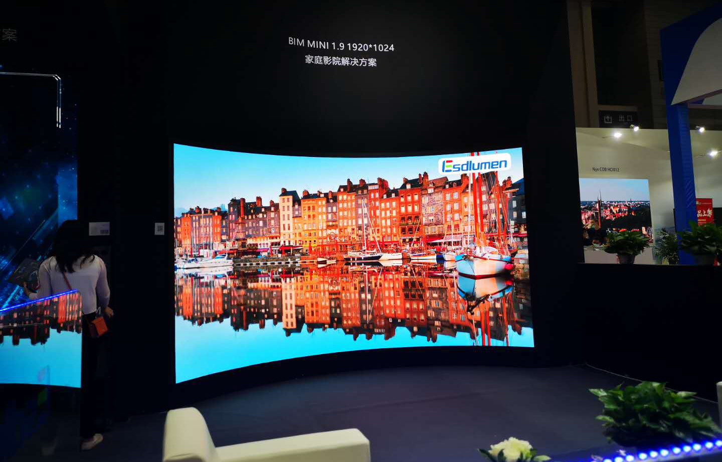 本次展會(huì)中,易事達(dá)率先展出家庭影院的解決方案,將高清震撼的影院搬到家中。該屏幕有易事達(dá)最新產(chǎn)品BIM Mini P1.9打造而成。該產(chǎn)品擁有更窄的箱體寬度,支持垂直拼接。這種設(shè)計(jì)可以更好的打造曲面屏,增加視覺(jué)效果,讓你在家中就可以感受身臨其境。