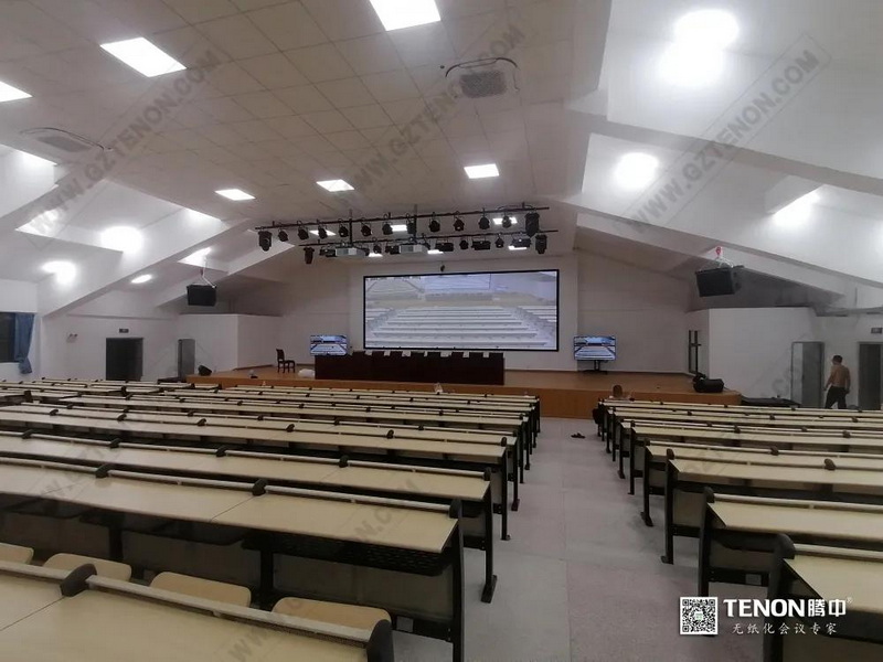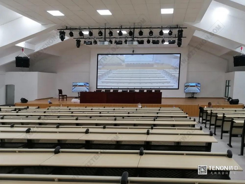 因?yàn)橐骖櫸枧_表演方式,因此,在采用傳統(tǒng)手拉手會議系統(tǒng)的方式下,還搭配了無線會議系統(tǒng),方便各種用途的需要。