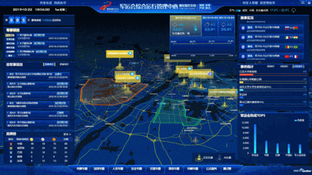 賽時期間,MOC系統(tǒng)整合比賽、交通、氣象、醫(yī)療、媒體等20多個系統(tǒng)的7600多個數(shù)據(jù)項(xiàng);實(shí)現(xiàn)指揮層1辦11部1委、執(zhí)行層18個專項(xiàng)和38個競委會的工作聯(lián)動;打造競賽、場館、人員、安全、交通、媒體、輿情、公眾服務(wù)等8個維度的監(jiān)控及展示;圍繞氣象、人流及突發(fā)事件等自動推送70多條預(yù)警信息,生成4000多條應(yīng)急預(yù)案;數(shù)十個部門聯(lián)動指揮,成功處置150多個應(yīng)急事件,有力保障了軍運(yùn)會的圓滿舉辦。