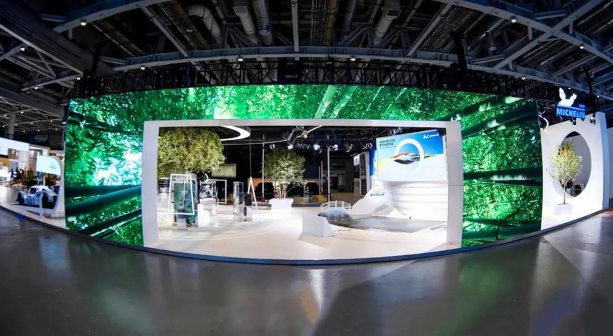 米其林將中國園林設計與品牌理念有機結合,打造了“園林4.0”展區(qū),闡述“一切皆可持續(xù)”的企業(yè)愿景。作為最為重要的意象構筑載體,近百平米洲明超高清大屏顯示穩(wěn)定、畫質出眾,作為“園林4.0”點睛之筆,與所有參觀者盡展生活之旅、共享進步之道。