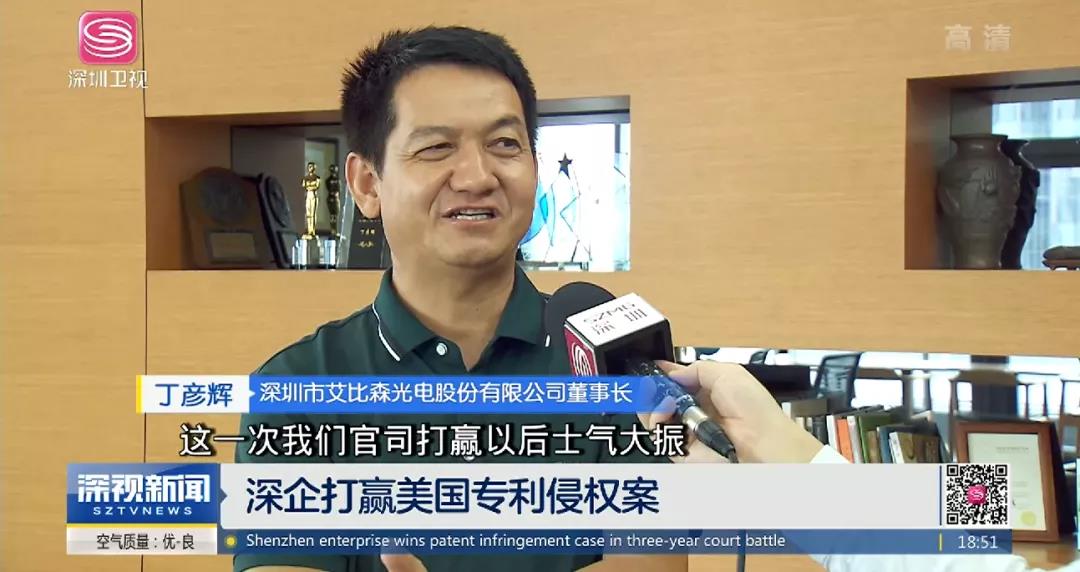 艾比森董事長丁彥輝先生就勝訴事件接受深圳衛(wèi)視專訪