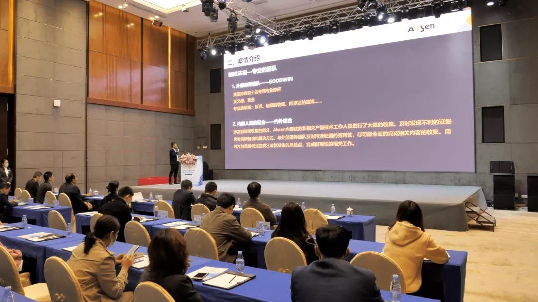 活動(dòng)現(xiàn)場,艾比森董事任永紅先生發(fā)表主題演講,圍繞UV公司發(fā)起337調(diào)查、艾比森聯(lián)合同行積極應(yīng)訴、德州東區(qū)法院庭審以及反訴等重點(diǎn)階段向現(xiàn)場嘉賓分享了勝訴案的全過程,闡明了艾比森強(qiáng)化知識產(chǎn)權(quán)布局、搶占國際競爭制高點(diǎn)的決心和舉措。