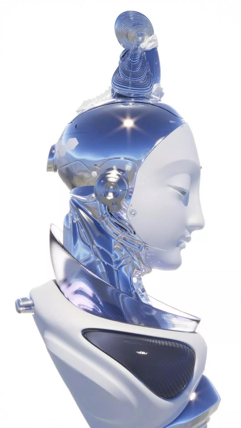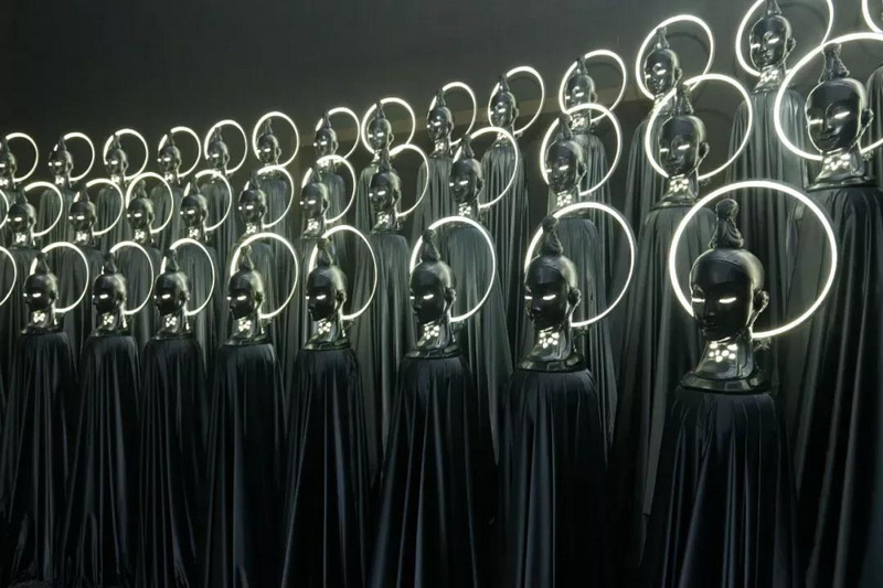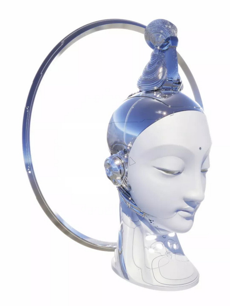 談起大悲宇宙是什么時(shí)候被社交網(wǎng)絡(luò)所熱議的,就不得不談起其未來感十足的半人、半機(jī)械、半神的作品《未來仏》。2020 年十一期間大悲宇宙在上海完成了《一百個(gè)未來并聯(lián)「仿佛」并聯(lián)一百個(gè)未來》大型多媒體裝置展。