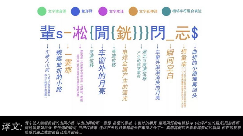 大悲宇宙在偶然的一次創(chuàng)作中,接觸到了亂碼,盯著亂碼看的同時(shí)思考到了該亂碼背后一些較深邃的部分,覺得這些混沌出錯(cuò)的背后隱匿著非常多的信息。于是開始嘗試用自己的邏輯去梳理這些亂碼,試圖將這些東西被整理成可以被理解的狀態(tài)!皝y碼詩”就隨即成為了大悲宇宙的一個(gè)創(chuàng)作中心,他想了解這些字符的可能性。 當(dāng)一個(gè)人一直陷在自己的思維中進(jìn)行創(chuàng)作或者寫作的時(shí)候或許會(huì)被自己所禁錮,在已有秩序下他沒有辦法逾矩,但是這些亂碼看似混沌卻又有隱藏的秩序,混沌之源或許可以作為拯救困頓的方法之一。 他開始尋找亂碼并將這些亂碼賦予自己理解下的意義,在這個(gè)基礎(chǔ)之上來解釋亂碼詩,或許就是 “一套豐富的解釋體系+混亂的模本(混亂之源亂碼)=亂碼詩”。