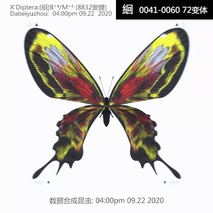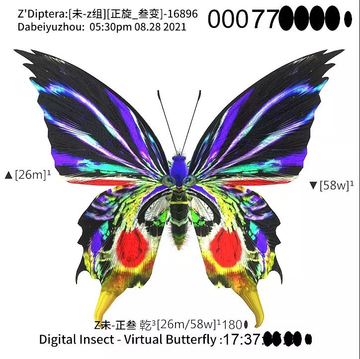 在進(jìn)行《虛擬蝴蝶》的創(chuàng)作中,算法給大悲宇宙提供了更多可能性的拓展,他也借由算法提升自己的學(xué)習(xí)進(jìn)度,在不到一個(gè)月的時(shí)間里,他就通過算法和他的篩選得出了兩萬只獨(dú)一無二的虛擬蝴蝶,這樣的速度不經(jīng)讓大悲宇宙感嘆,在這樣的時(shí)代背景下借助計(jì)算機(jī)的力量釋放了自己的勞動(dòng)力和創(chuàng)造力,同時(shí)他也感受到了科技放大了藝術(shù)的感知力和創(chuàng)造力。