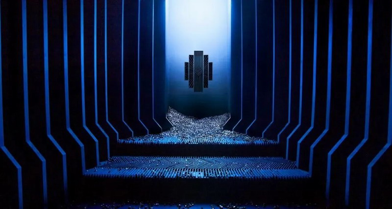 玻璃制成的裝置的地板、墻壁和天花板有機(jī)浮雕和散布著的骨頭似的圖案對(duì)稱性和和諧性在這里完美呈現(xiàn)并反映著圣所的圣潔