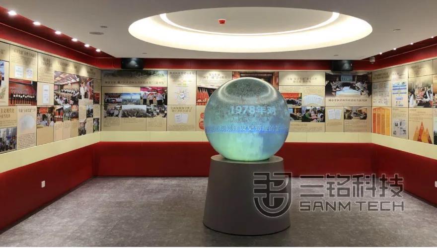 進(jìn)入展廳內(nèi)部,到“改革開放和羅湖黨建發(fā)展史”展區(qū),可以通過觸摸球幕設(shè)施了解羅湖作為深圳改革開放原點(diǎn)的故事。