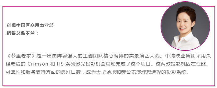 《夢(mèng)里老家》前兩季演出采用 1 臺(tái) Christie Roadster S+22K-J 及 1 臺(tái) Roadie HD+35K 投影機(jī)來進(jìn)行背景投影。